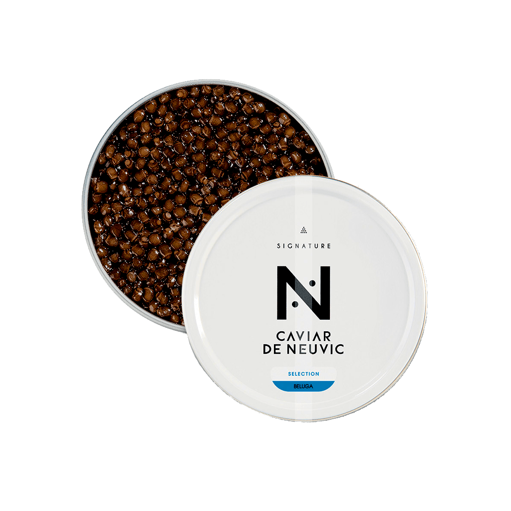 Beluga caviar is often considered the king of all caviars. It is characterized by large grains that are particularly valued by consumers. Its flavor is strong, and the grain texture is creamy. The color varies in light gray shades.