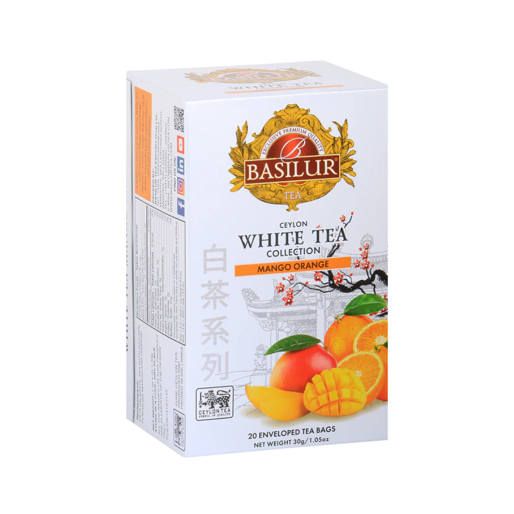 Delikatna fuzija belog čaja sa tropskim akcentima manga i narandže. Lagana i elegantna mešavina koja donosi savršenu harmoniju između voćne svežine i nežne slatkoće. Svaki gutljaj otkriva suptilan, mirisan karakter Cejlonskog belog čaja — idealan za trenutke opuštanja i tišine.