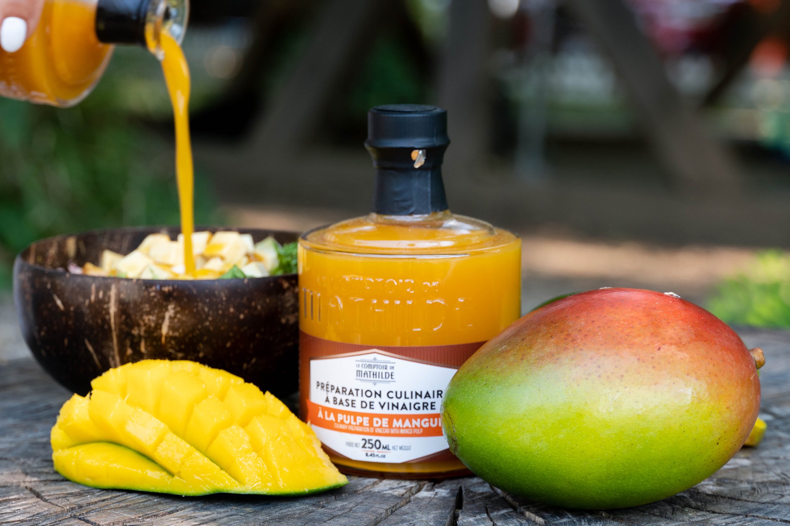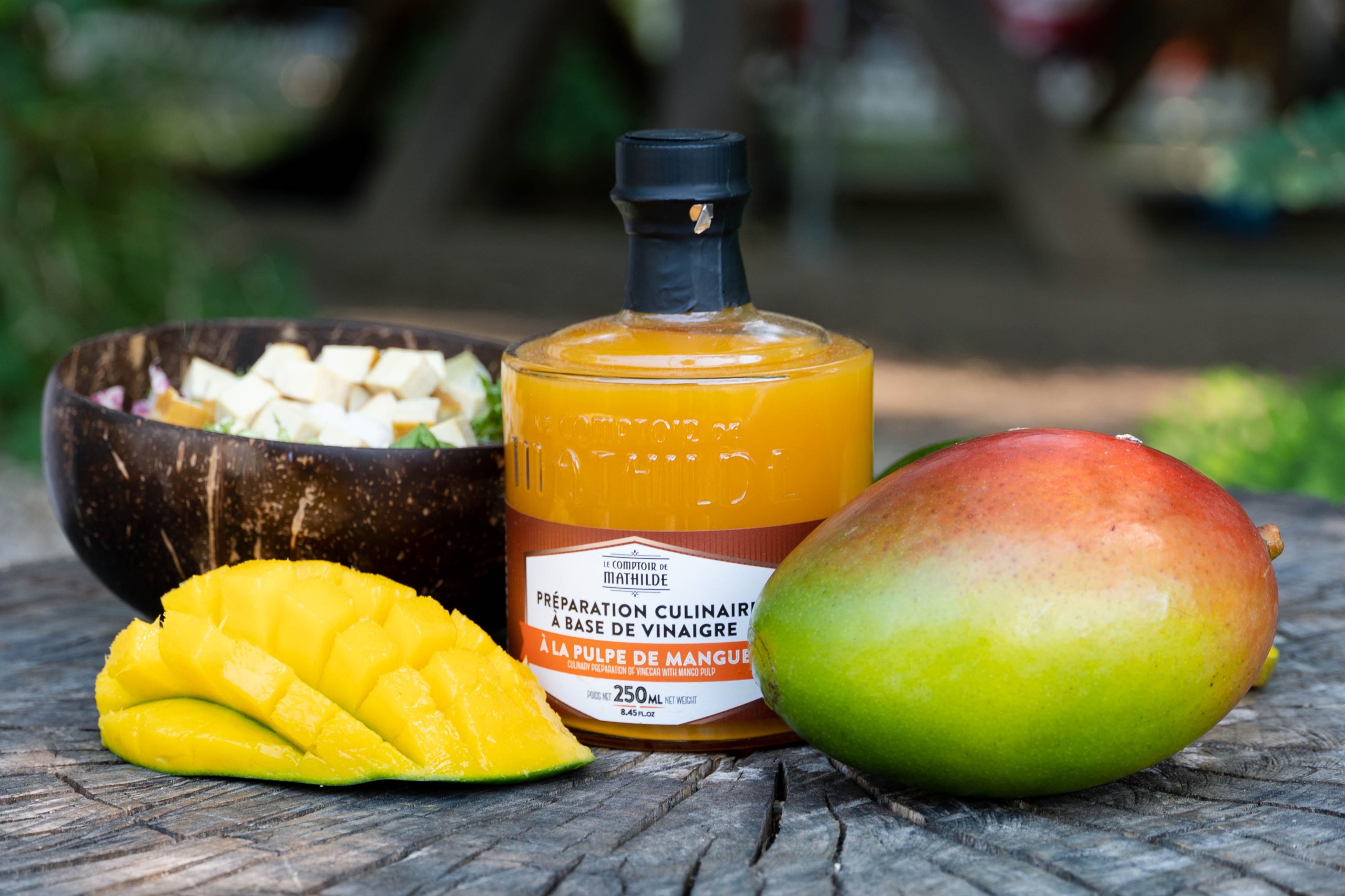 Inovativan proizvod koji u sebi sadrži pire od manga obogatiće vaše jelo i stvoriti drugačiju dimenziju ukusa. Kiseo ali i voćno – egzotičan ukus se dobija fermentacijom pulpe manga uz dodavanje kvasca i šećera. Jedinstven ukus ovog sirćeta može se koristiti kao dodatak u koktelima radi zanimljivijeg ukusa. Boce u kojima dolazi ovaj proizvod možete slagati jednu na drugu što ce vam uštedeti prostor, a takođe može da posluži u dekoraciji vaše kuhinje.