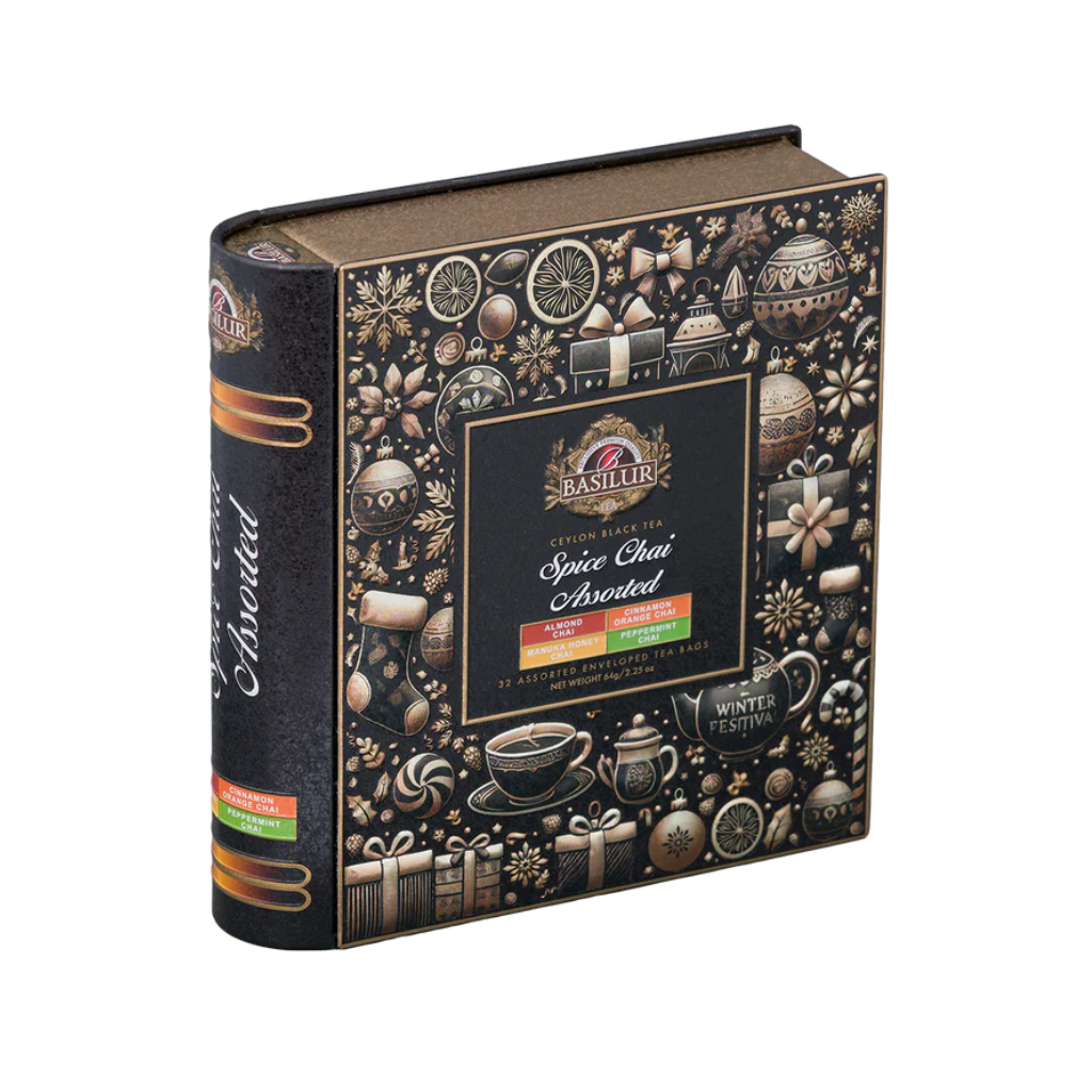 Basilur Spice Chai Assorted is a refined collection of spiced black teas designed to warm and elevate moments of relaxation. This assortment features four carefully crafted chai blends: Almond Chai, Cinnamon Orange Chai, Manuka Honey Chai, and Peppermint Chai. Each tea is based on premium Ceylon black tea and enriched with aromatic spices that add depth, warmth, and character to every cup.