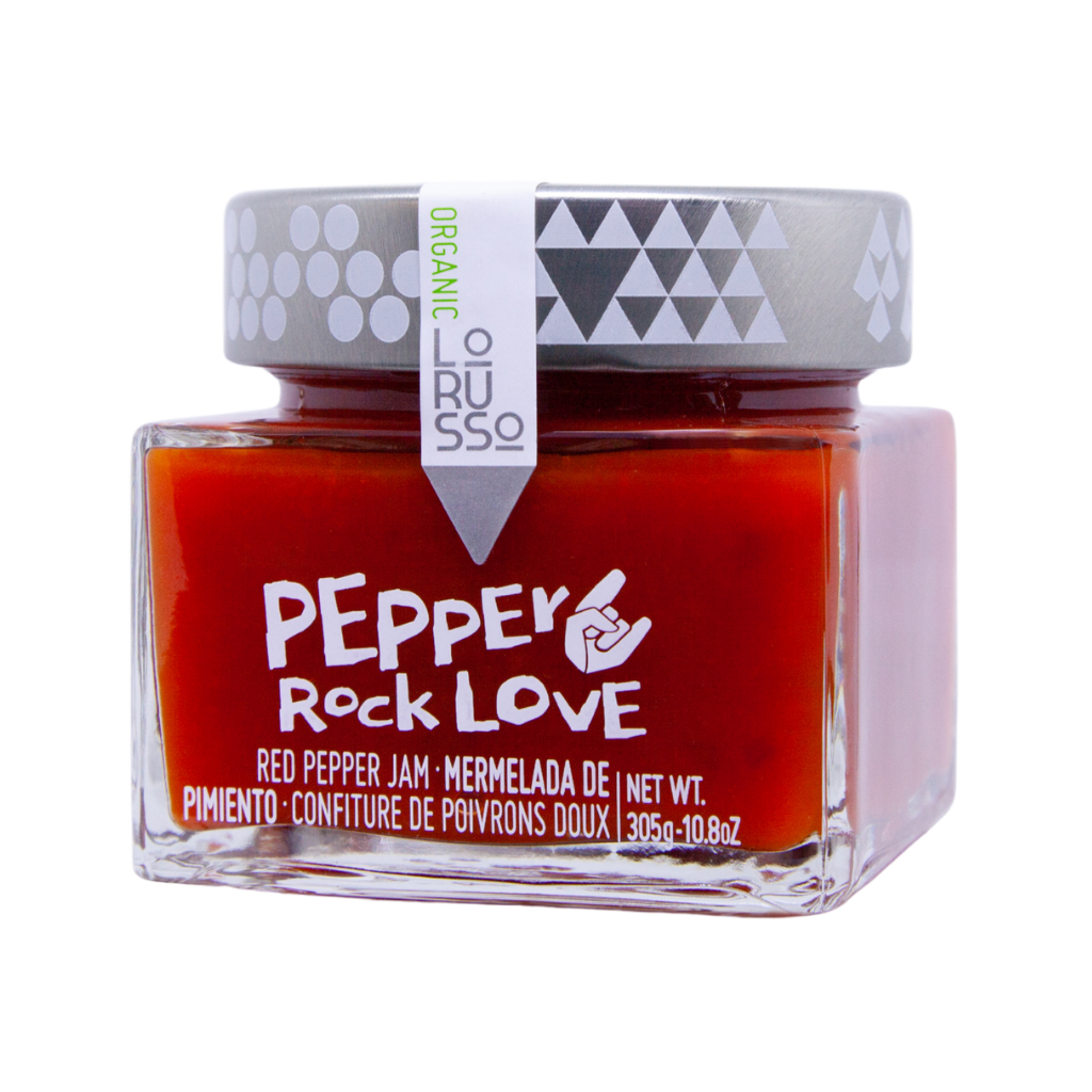LoRusso Pepper Rock Love organic sweet pepper jam offers a surprising and sophisticated combination of the natural sweetness of peppers with a subtle spicy note. Made with as much as 85% organic vegetables, this artisanal specialty delivers a rich, full flavor that pairs perfectly with savory and gourmet combinations.