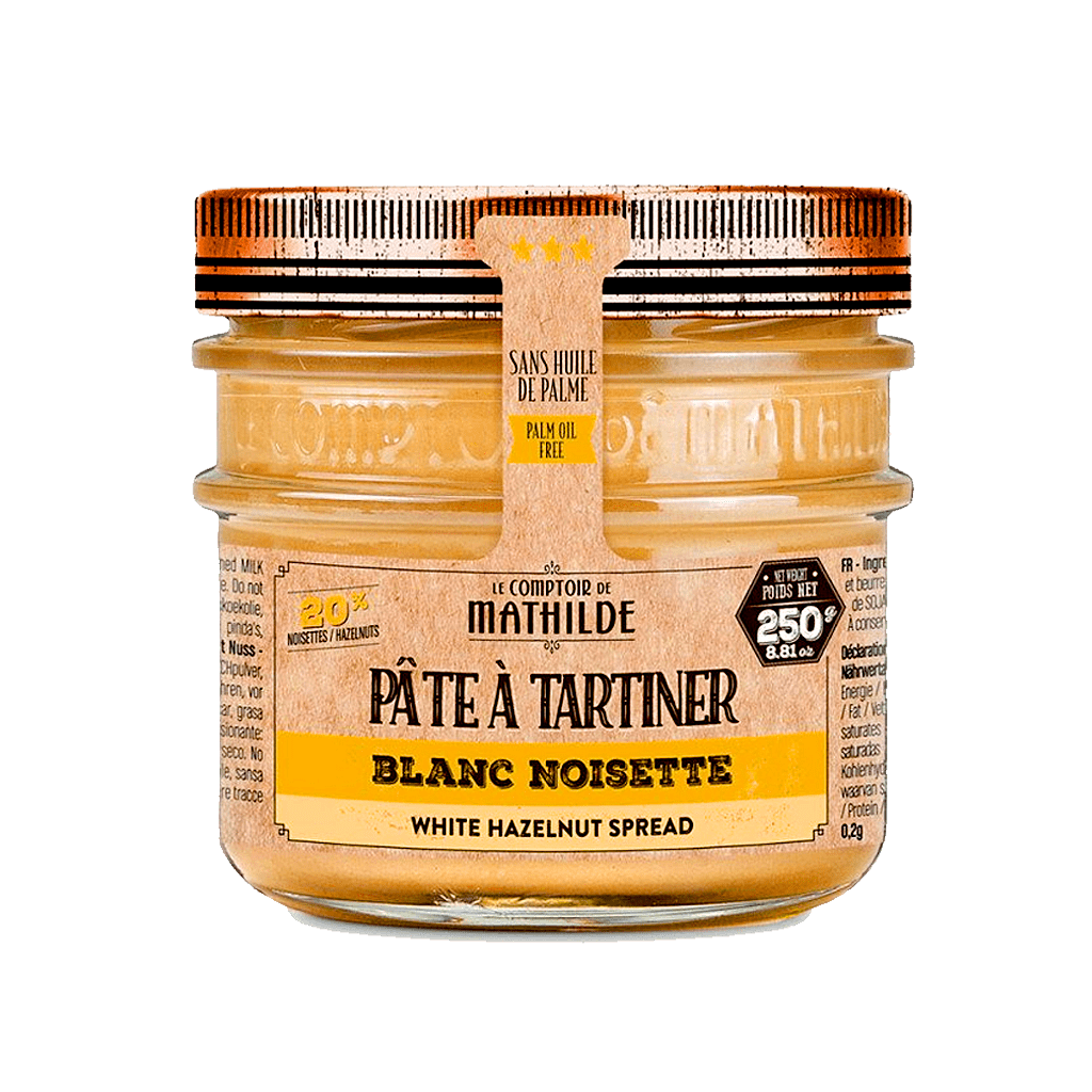 Discover the white hazelnut spread that will delight both young and old. With 20% hazelnut paste, you get a unique richness of flavor. Just one bite is enough to taste every hazelnut!