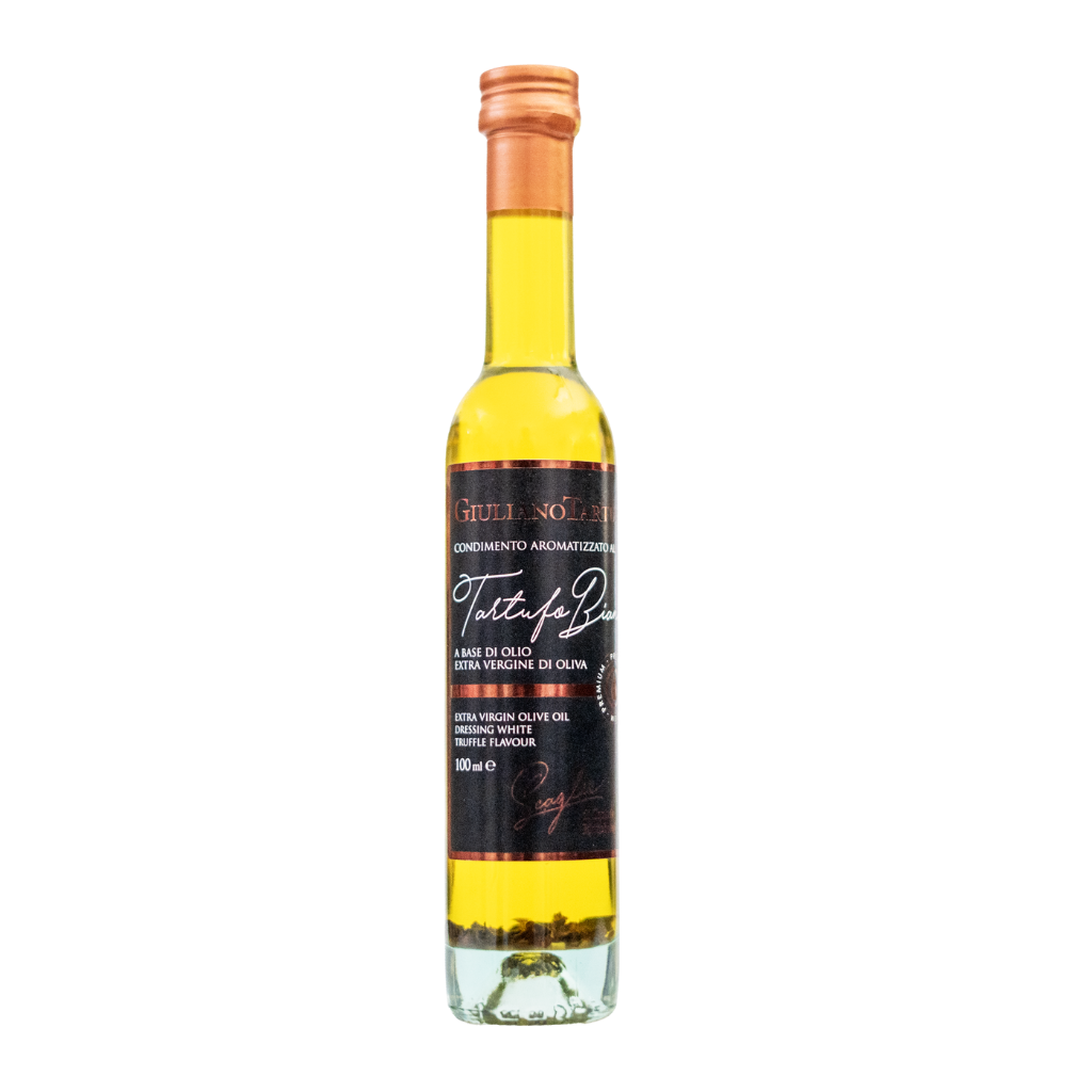 Giuliano Tartufi White Truffle Olive Oil With Slices je vrhunska mešavina ekstra devičanskog maslinovog ulja sa komadićima belog tartufa, kreirana da svakom jelu doda intenzivnu i sofisticiranu aromu karakterističnu za luksuznu italijansku kuhinju. Idealna je za sve koji žele ukus tartufa bez komplikovanih priprema.